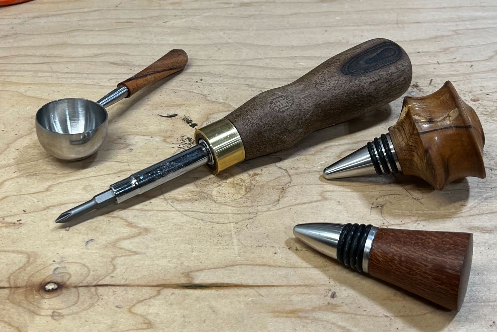 This is a beginner level class that covers the basic use of lathe tools and best practices with the lathe itself, focused on spindle turning. During this class we will cover the different tools and how to sharpen them, as well as several different project mounting techniques. You will get to choose from several project options (bottle stopper, coffee scoop, or screwdriver) to finish and take home at the end of this class. You will be provided a wood blank, but you may bring your own if you choose, so long as it is at least 2” x 2” x 5” in dimension (unless you choose a bottle stopper, in which case it may be 2” x 2” x 3”).